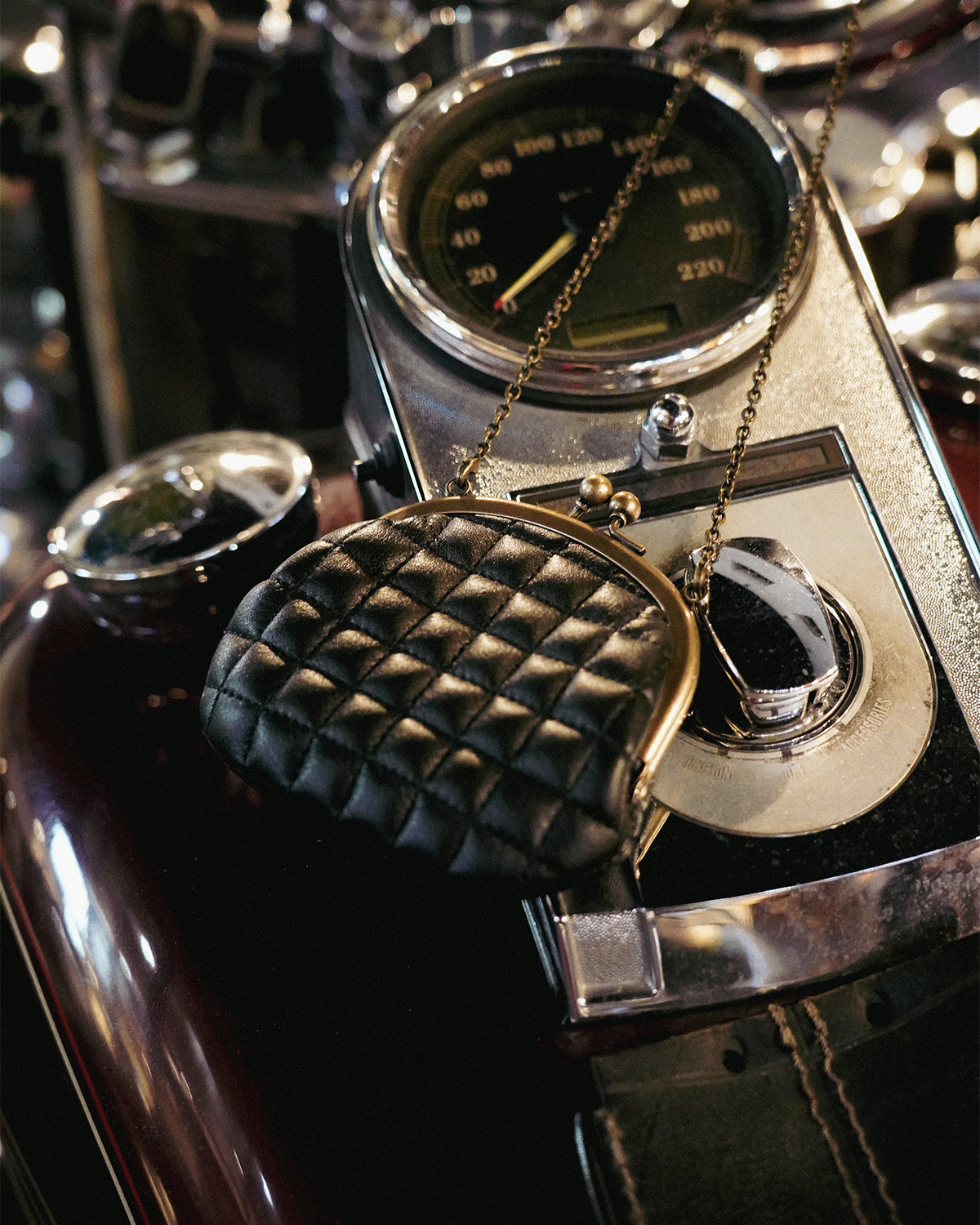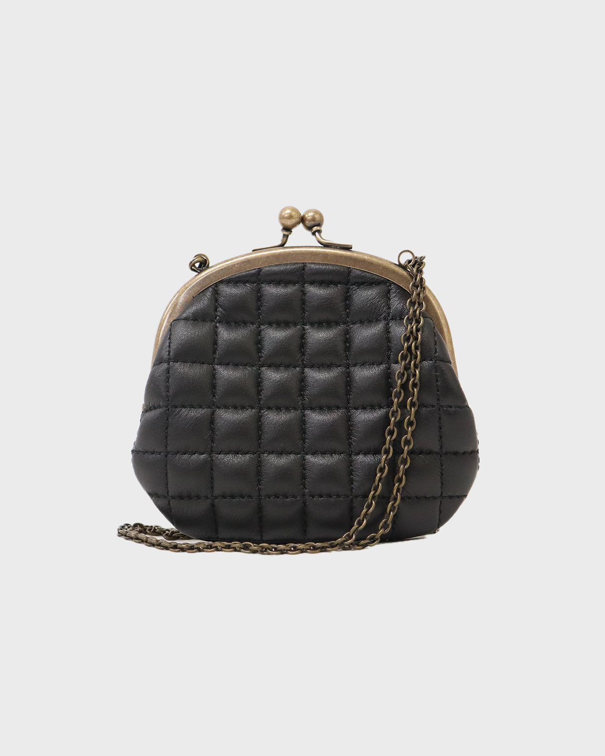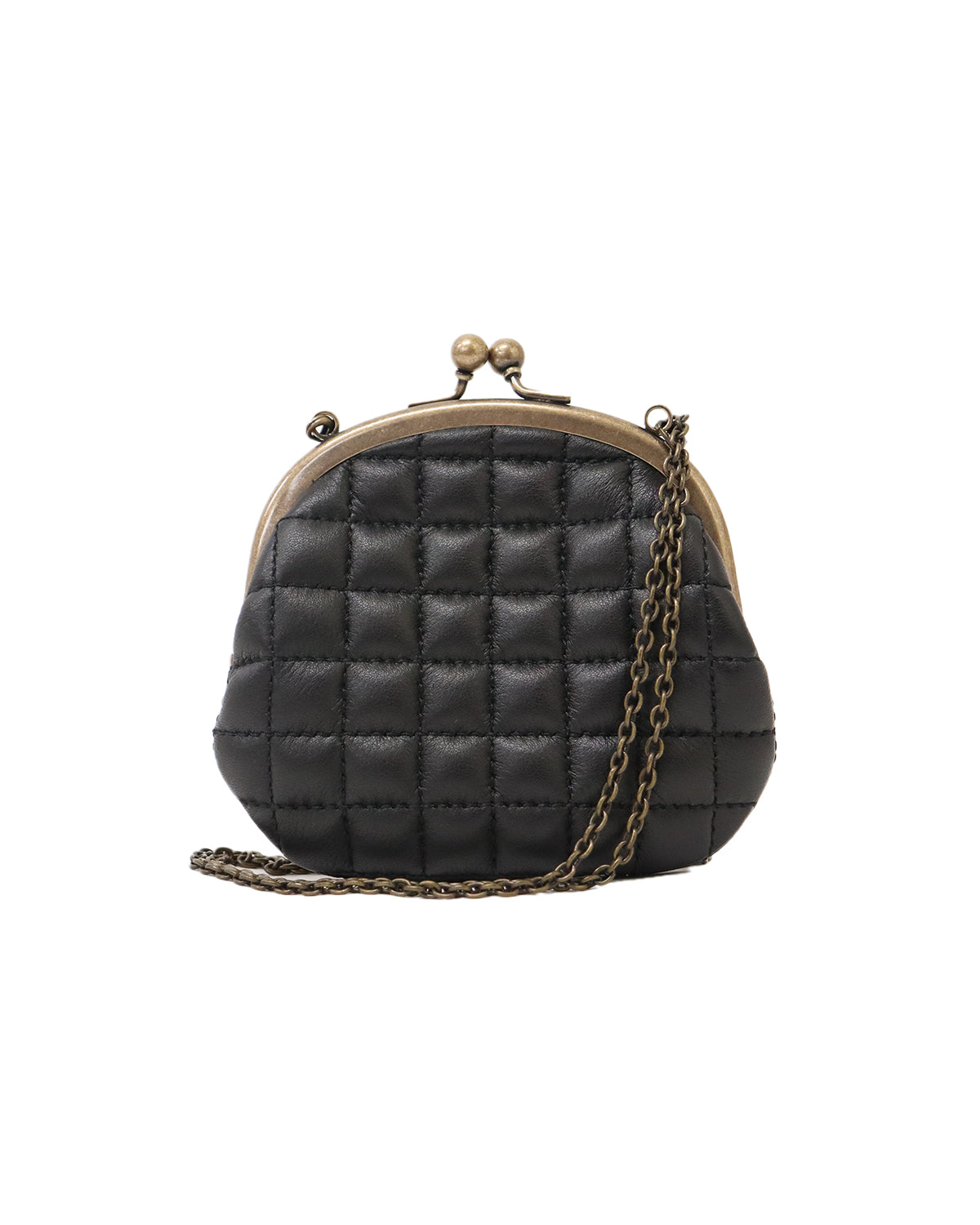 クラシカルながま口仕様に、キルティングレザーを組み合わせたチェーン付きウォレットは、ヴィンテージ感とモダンさを併せ持つ、唯一無二の存在感。
